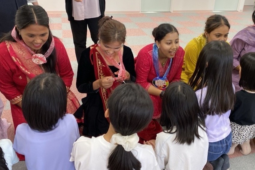 ネパール、バングラデシュ、パキスタン、ベトナム出身の学生さんたちは子どもたちのために楽しいクイズを準備し、美しい民族衣装を身にまとってダンスも披露してくださいました。