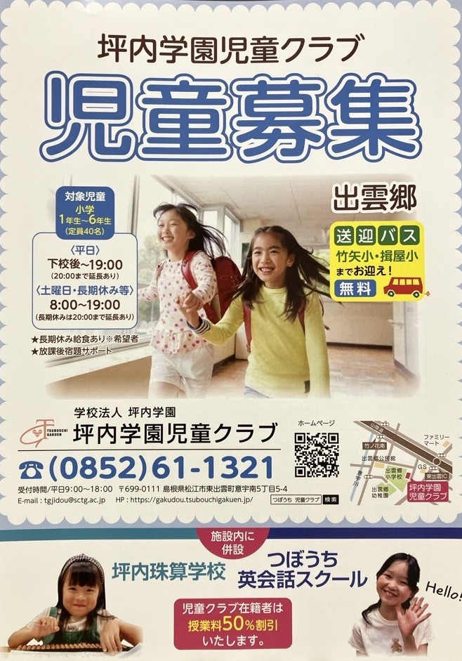 ★竹矢小・揖屋小までバスでお迎えにまいります。(往路送迎 無料)