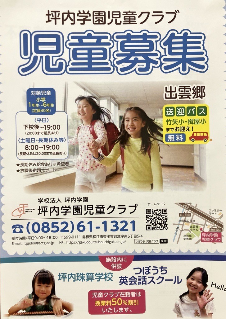 ★竹矢小学校・揖屋小学校まで無料バス送迎しております★